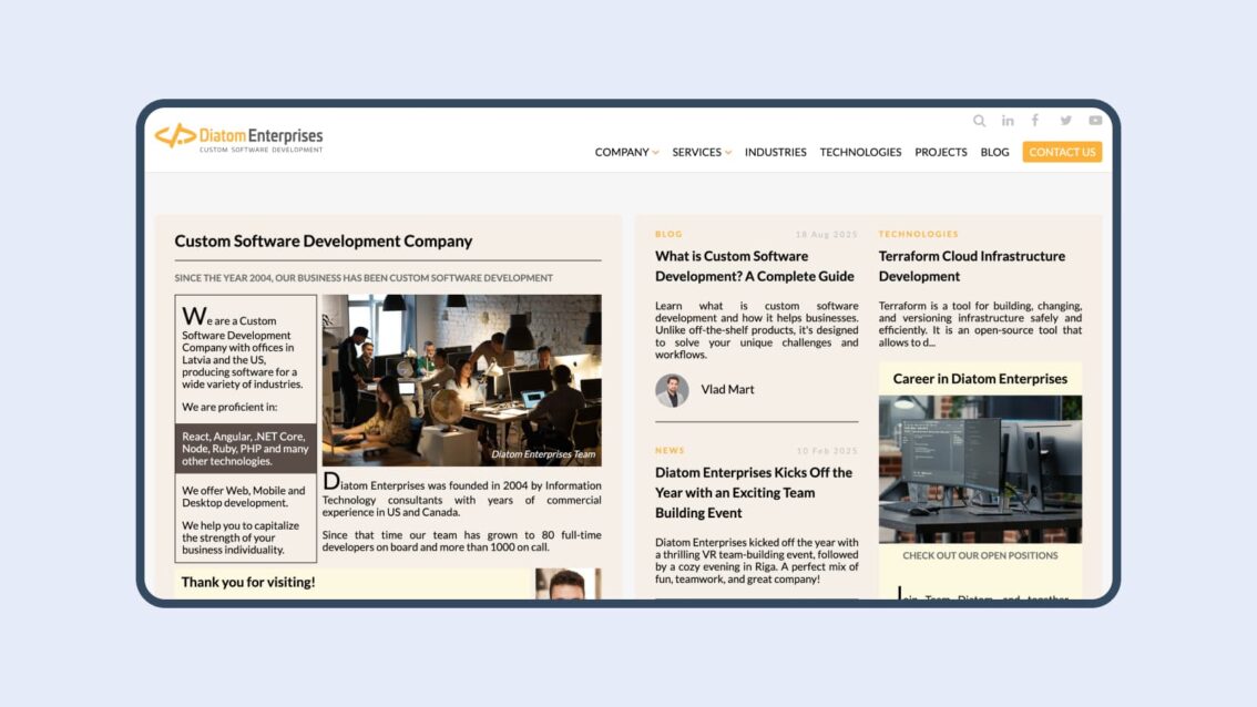 Diatom Enterprises is a trusted software offshore team provider offering full-cycle software development services to international clients. With a strong technical foundation in .NET, React, Node.js, and mobile technologies, the company delivers tailored solutions to startups and enterprises alike.